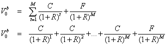 With the coupon payment fixed each period, the C term in Equation 1 can be factored out and the bond value can be expressed as: